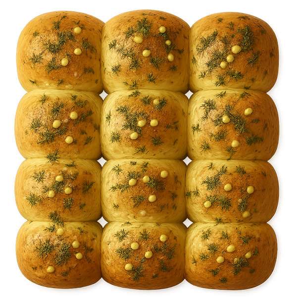 Soft Ukrainian yeast bread rolls, baked until golden and brushed with fragrant garlic oil. Traditionally served with borscht but can also accompany other soups and main dishes. Originating from central Ukraine, pampushky are a beloved comfort food.